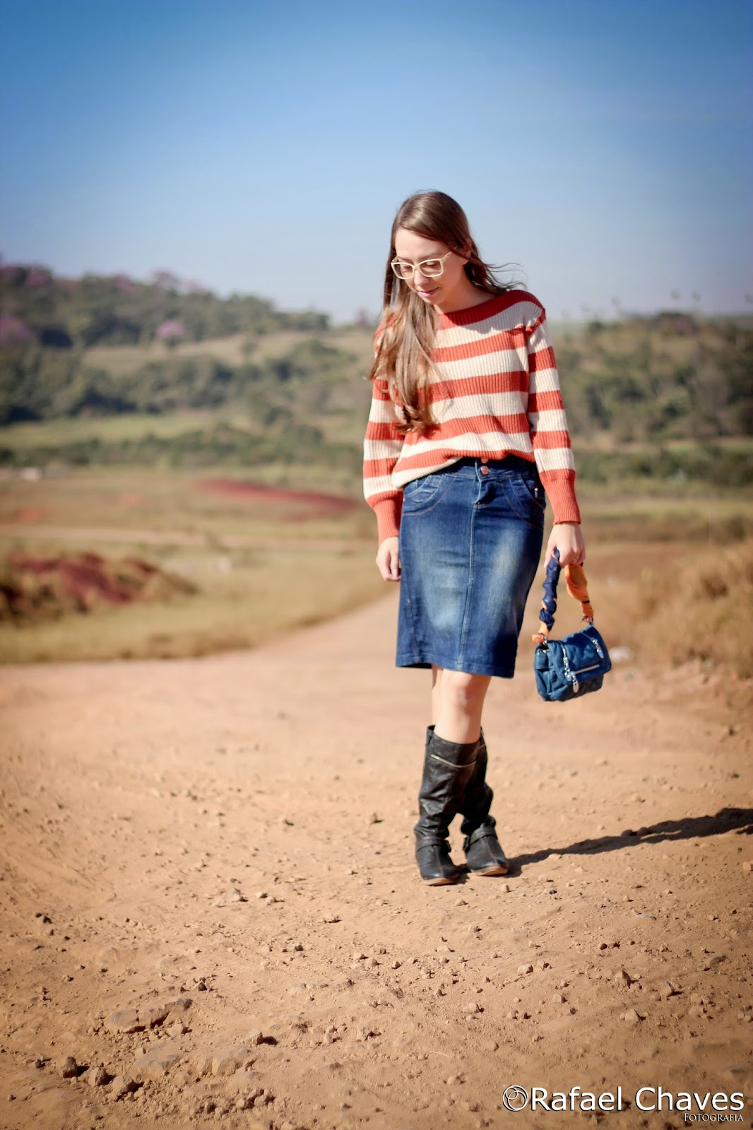 COM SAIA JEANS: jeans + bota fazem uma combinação perfeita! O jeans é clássico, e a bota dá um ar despojado ao look, sem falar no conforto! Combinei com o tricô listrado que peguei emprestado da mãe e ainda não devolvi! Tricô com bota também é tudo de lindo!